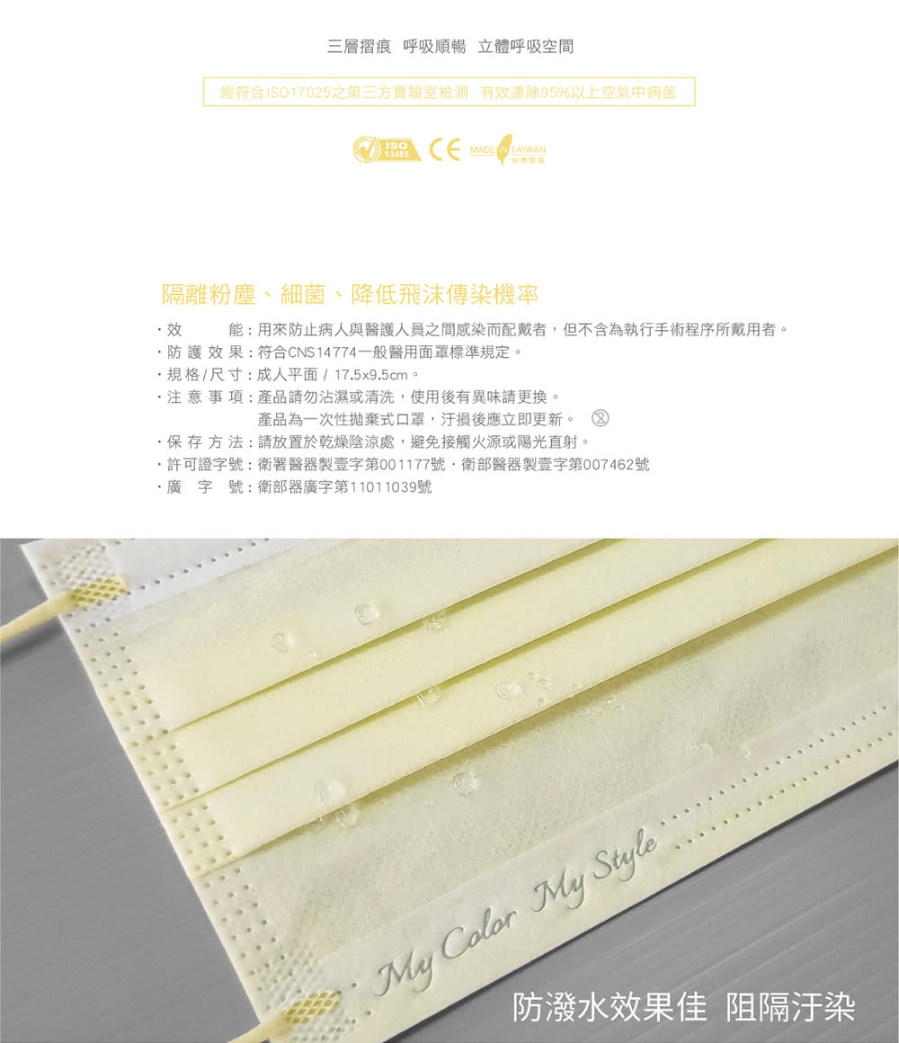 ●主要成分或材料:聚丙烯、熔噴不織布 (外層:聚丙烯不織布;中層:熔噴不織布;內層:複合不織布)
