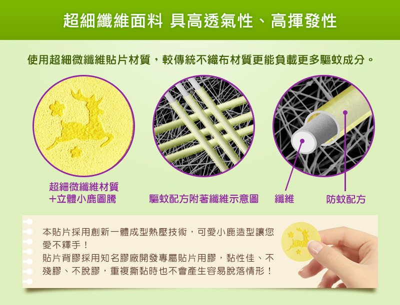 .使用方法:將貼片取下並貼在衣領、袖口、褲管等較常被蚊蟲叮咬處之織物上或場所使用。